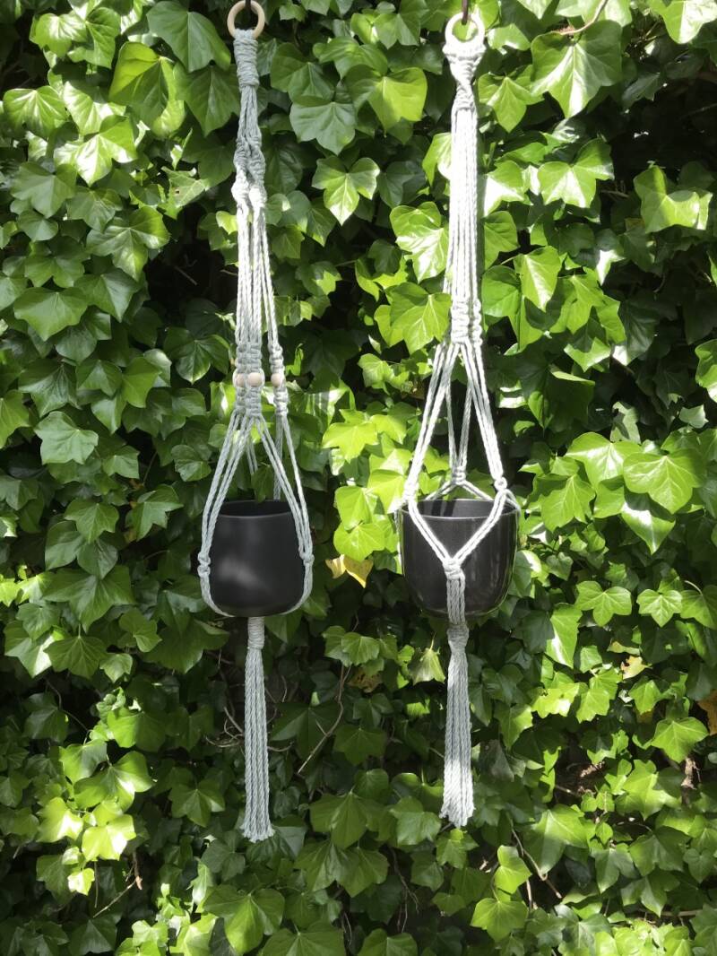 Tijdens de workshop maak je 2 verschillende plantenhangers* (zoals afgebeeld) en leer je 3 belangrijke basisknopen.